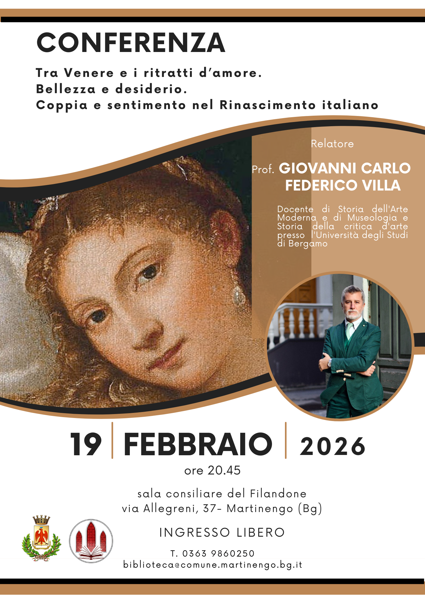La Biblioteca di Martinengo è lieto di invitare la cittadinanza a un appuntamento culturale di eccezionale rilievo. Giovedì 19 febbraio, la Sala Consiliare del Filandone ospiterà una conferenza dedicata all'arte e ai sentimenti nel periodo più splendente della nostra storia: il Rinascimento.